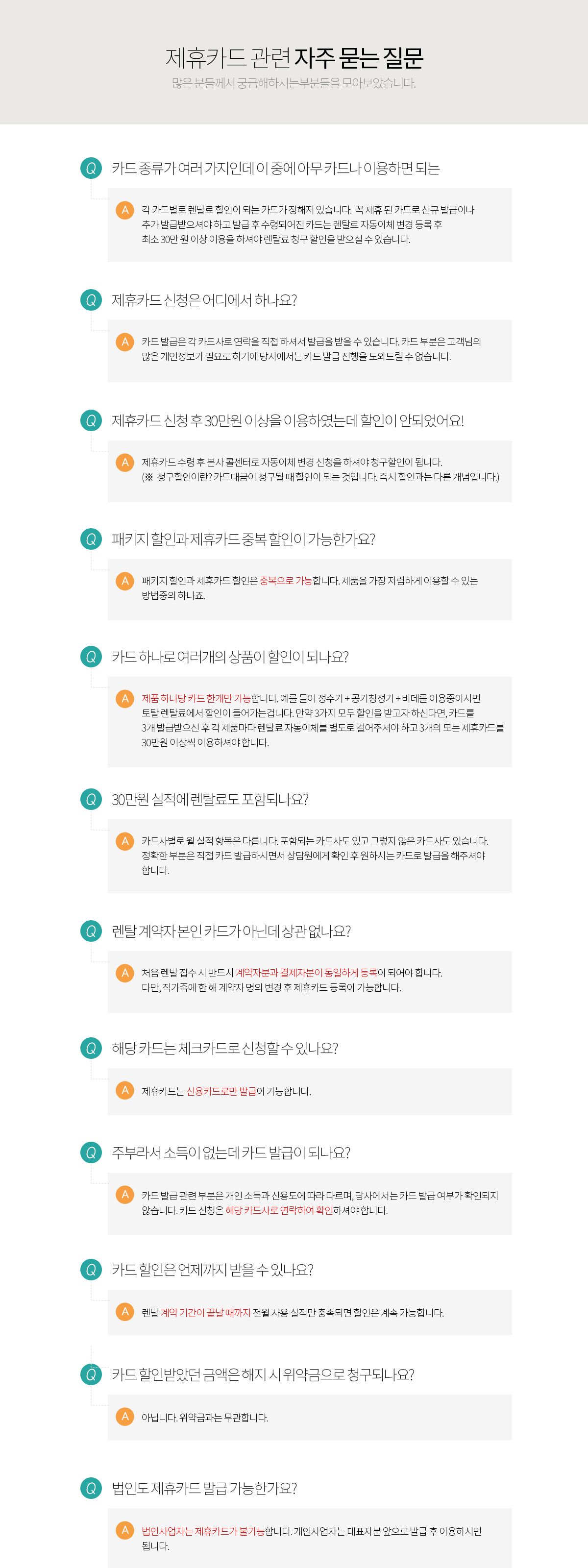 ![]() ㆍ12월 카드 발급 고객 추가 할인 프로모션 ※ 대상 : 직전 6개월(25.06~25.11) 모든 삼성카드 청구 및 사용 이력이 없는 고객 ※ 기간 : 2025년 12월 1일 ~ 12월 31일 - 전월 실적 30만원 이상 구간 렌탈료 10,000원 추가 할인 - 기존 7,000원 → 17,000원 (최대 60개월간 적용) - 전월 실적 70만원 이상 구간 렌탈료 10,000원 추가 할인 - 기존 10,000원 → 20,000원 (최대 60개월간 적용) - 전월 실적 120만원 이상 구간 렌탈료 10,000원 추가 할인 - 기존 13,000원 → 23,000원 (최대 60개월간 적용) * 삼성카드 발급시 '삼성 모니모앱' 설치 필수 ㆍ 연회비 : 국내(15,000원), 해외겸용(15,000원) |